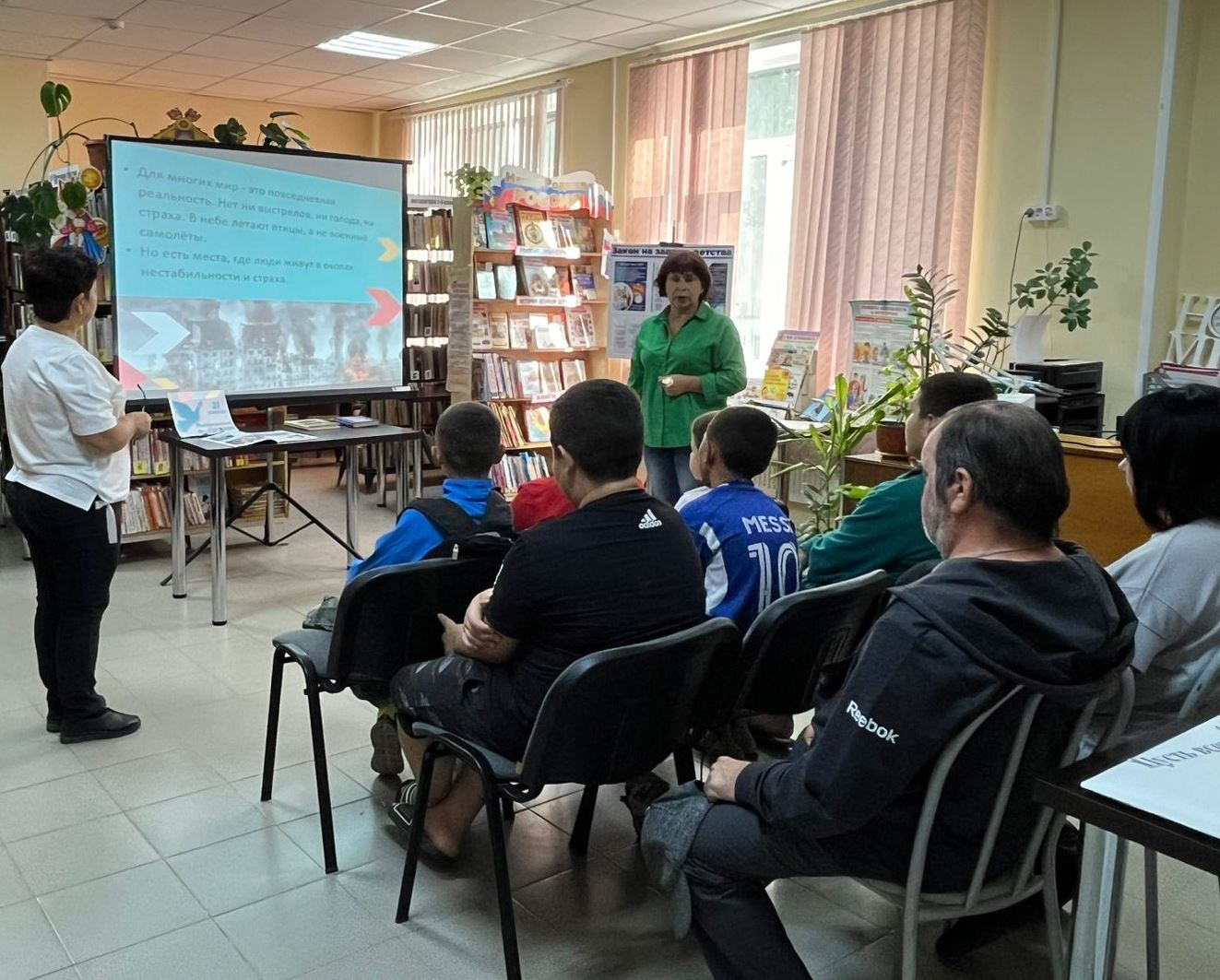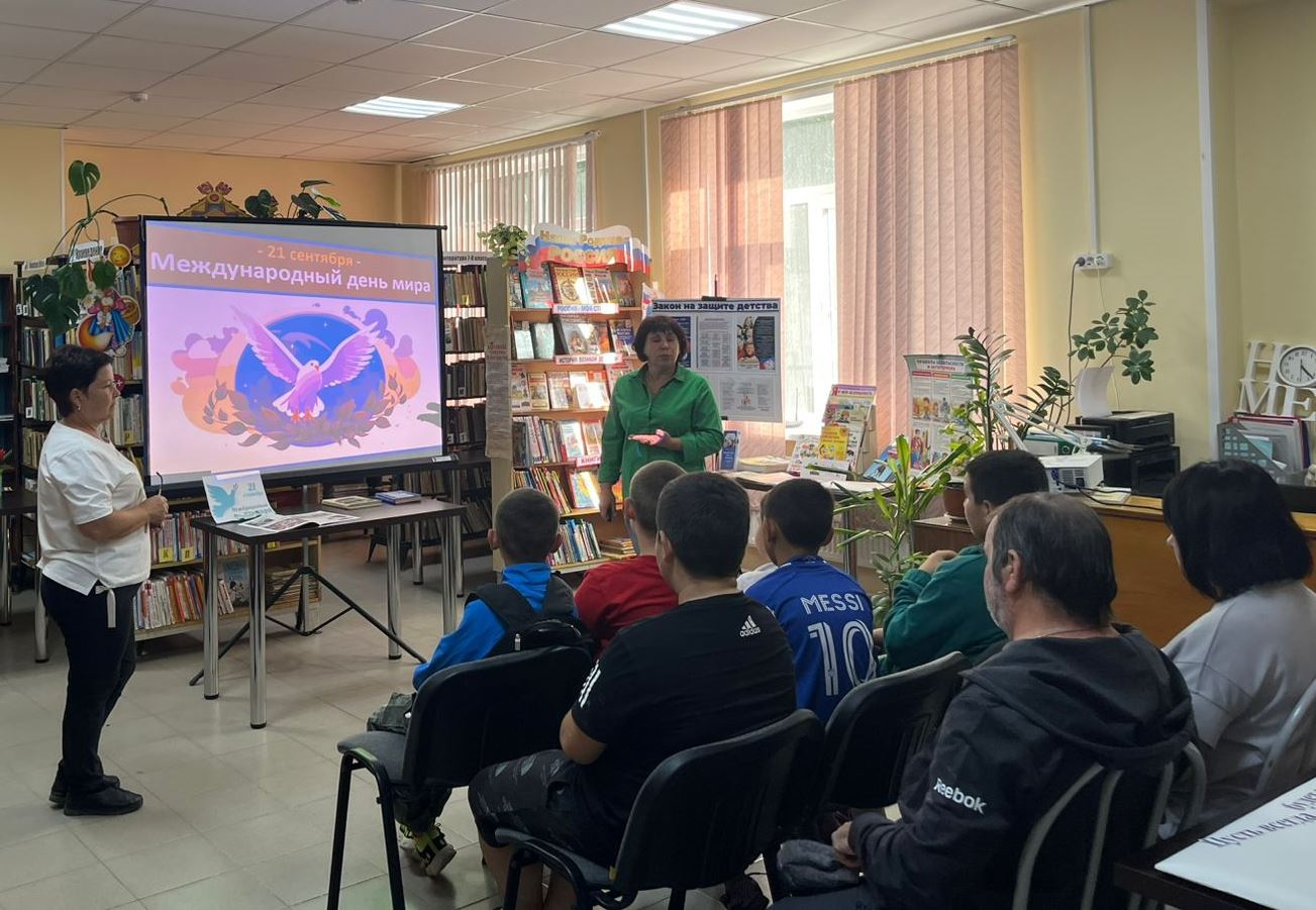 Ребята узнали об истории праздника, его традициях и символах. Они познакомились с колоколом Мира, который звучит в разных уголках планеты, напоминая о важности мира и примирения, с Белым голубем который стал знаком мира и гармонии. Для лучшего понимания темы была показана мультимедийная презентация. Она рассказывала, что нужно для улучшения мира и почему важно уважать, и быть добрыми друг к другу. Ребята поняли, что каждый человек хочет жить спокойно и счастливо под мирным небом. В завершение встречи участники мероприятия сделали аппликацию из бумаги «Пусть всегда будет мир!».