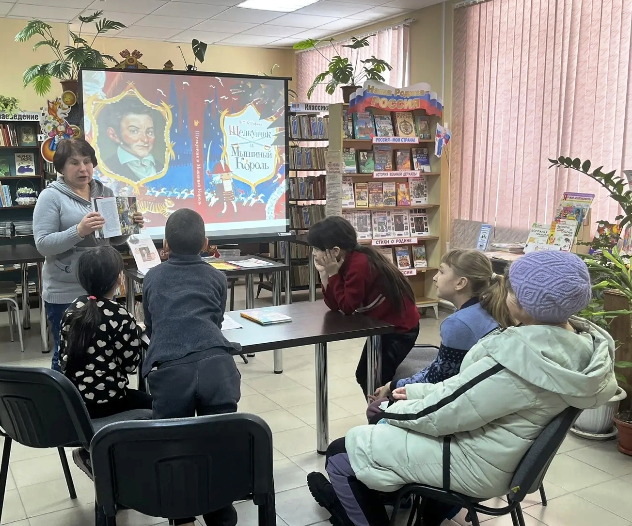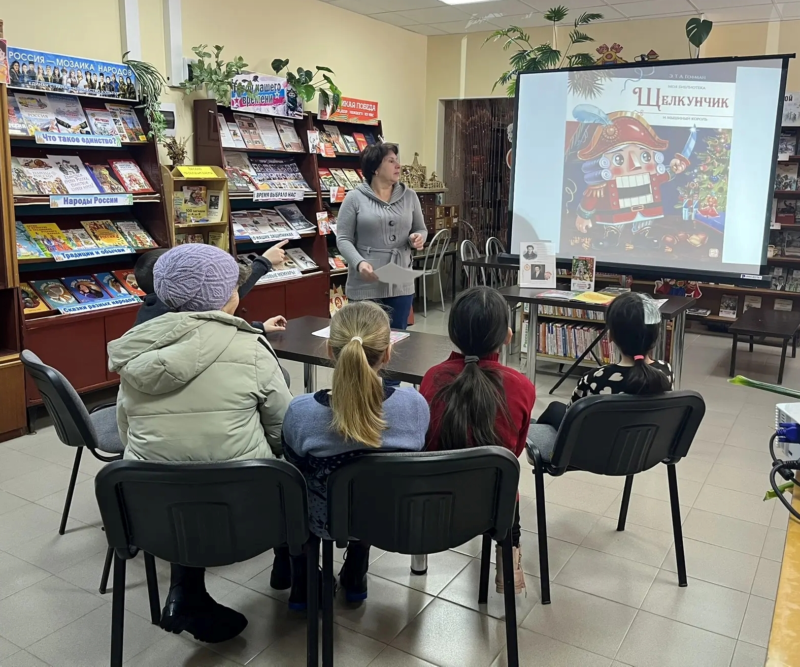 Библиотекарь рассказала ребятам о жизни и творчестве великого автора и познакомила с историей создания рождественской сказки «Щелкунчик и Мышиный король». Дети посмотрели диафильм по сказке «Щелкунчик», затем рассматривали различные книжные издания повести-сказки «Щелкунчик и Мышиный король». В завершение литературного часа ребята занялись творчеством: они раскрашивали картинки по сюжету сказки Гофмана «Щелкунчик и мышиный король».