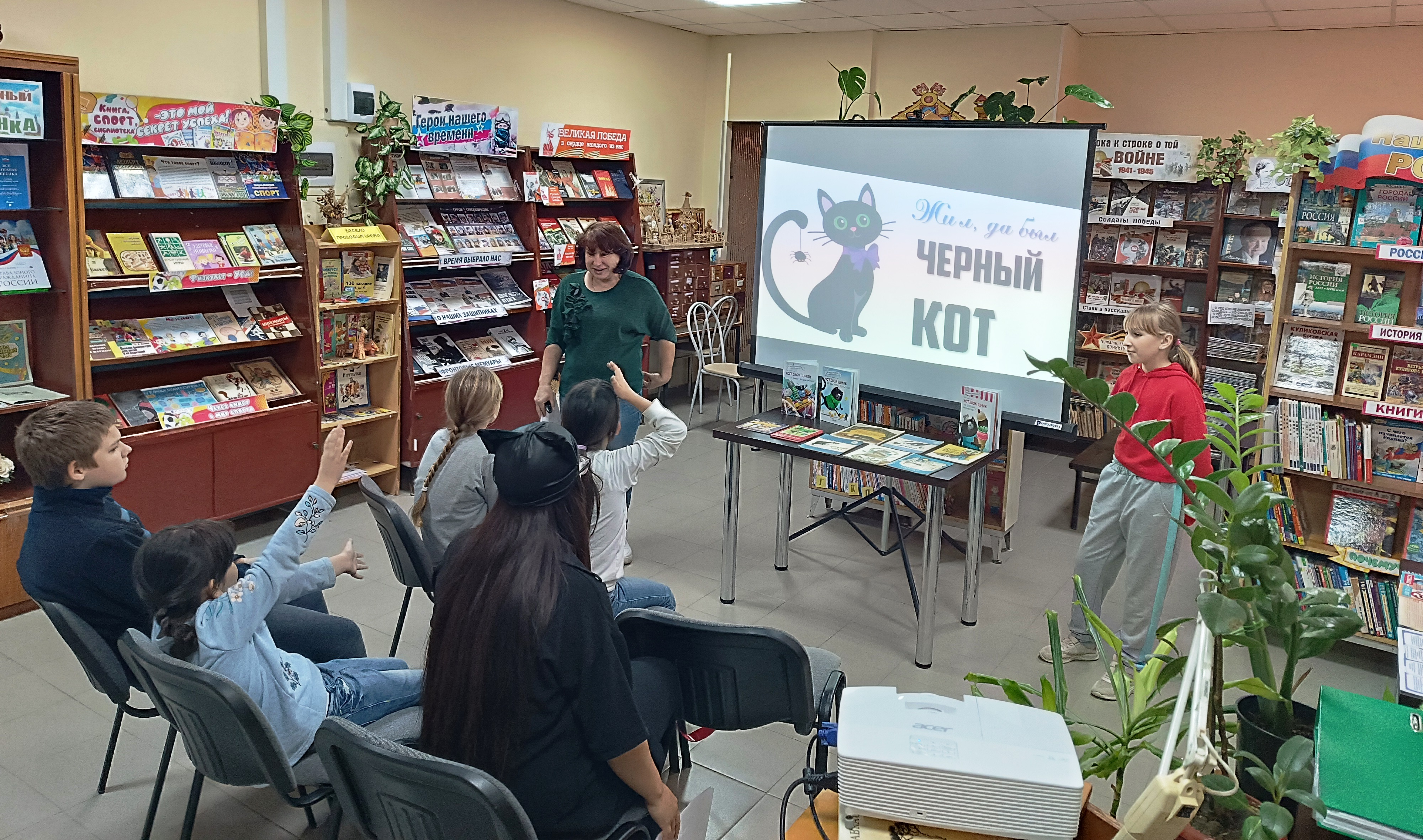 Для ребят детского клуба чтения «Мир книжных затей» сотрудники библиотеки и клуба х. Красная Батарея провели познавательный час «Жил да был черный кот». Ребята узнали историю возникновения Дня защиты чёрного кота, вспомнили приметы, связанные с чёрными котами, и поделились интересными историями о своих питомцах. Они активно участвовали в литературной викторине и поиграли в игру «Мяу-Мур» вместе с котом. В конце мероприятия познакомились с книгами, где главными героями являются кошки. Встреча прошла весело и познавательно, оставив яркие воспоминания и укрепив любовь детей к домашним животным, особенно черным кошкам, которым посвящена эта необычная дата.