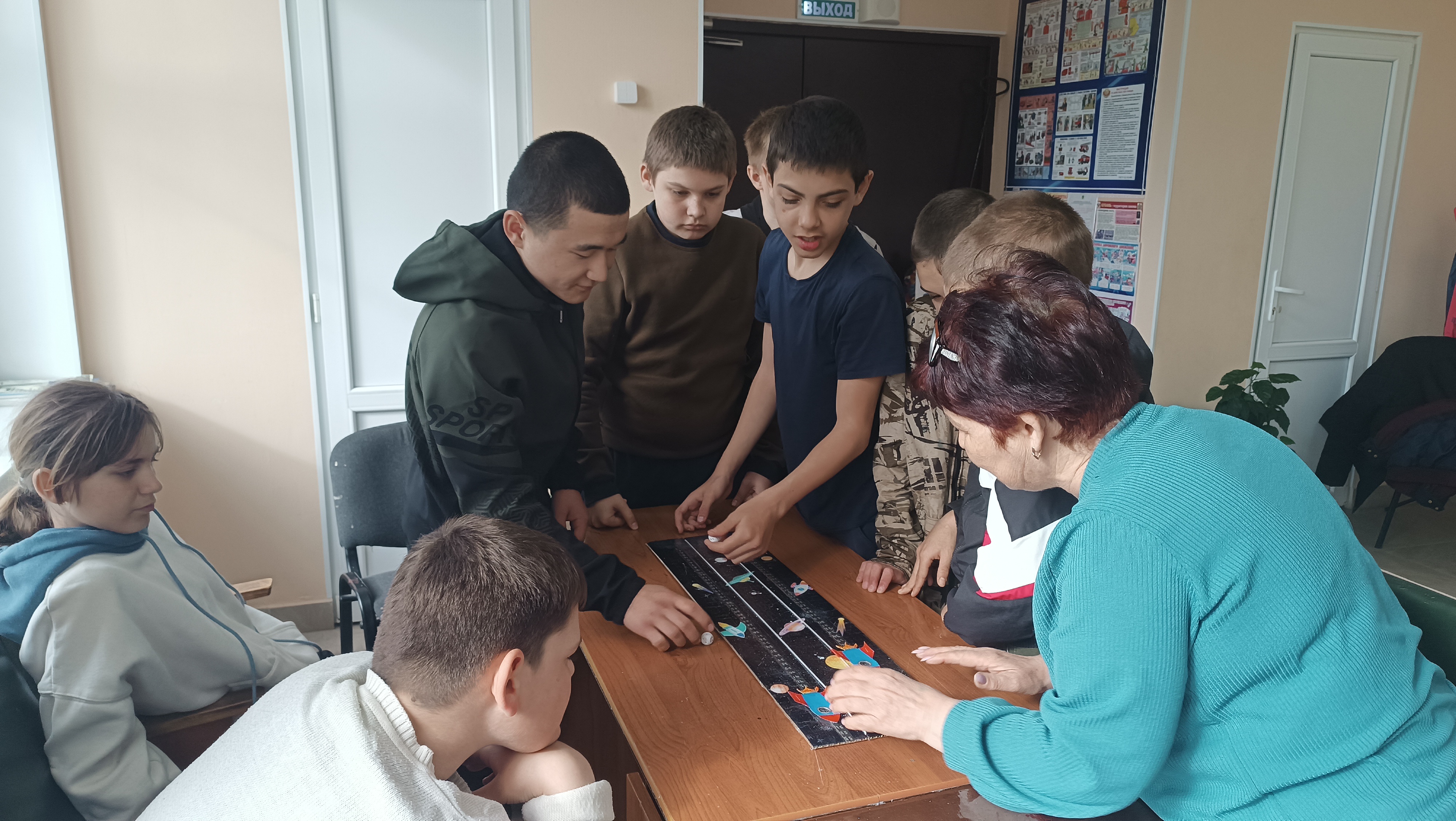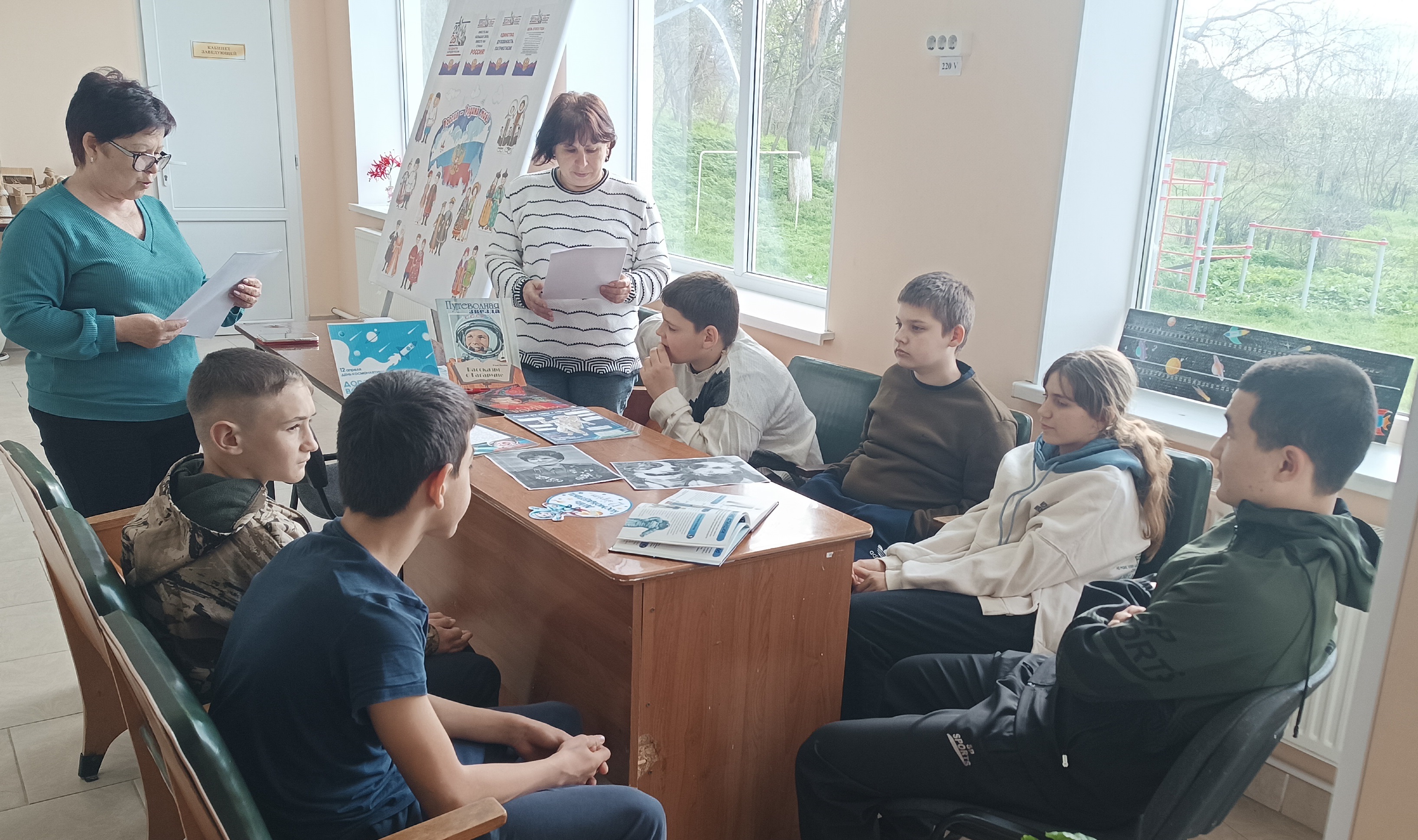 Ведущие рассказали об истории праздника и интересных фактах первого полёта Юрия Гагарина в космос. Окунувшись в мир космоса, ребята отгадывали загадки, отвечали на вопросы викторины о первом полёте человека в космос, о Солнечной системе, о загадочных звёздах и далёких планетах, решали космические задания. Завершилось мероприятие увлекательной настольной игрой «Путешествие во Вселенной», которую своими руками создала для ребят руководитель кружка декоративно-прикладного искусства «Сувенир» Руденко Г. А. Книжная выставка «Удивительный мир космоса» помогла читателям расширить свои знания о космосе.